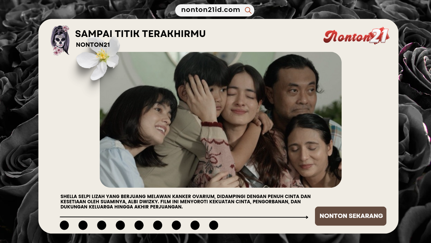 Apakah kamu sedang mencari film yang bisa menyentuh hati dan memberi makna tentang arti cinta sejati? Sampai Titik Terakhirmu adalah jawabannya. Film inspiratif ini bisa kamu saksikan melalui NONTON21, platform nonton online dengan kualitas terbaik. Terinspirasi dari kisah nyata Shella Selpi Lizah dan Albi Dwizky, film ini mengajarkan tentang cinta, kesetiaan, serta pengorbanan yang tulus hingga akhir.