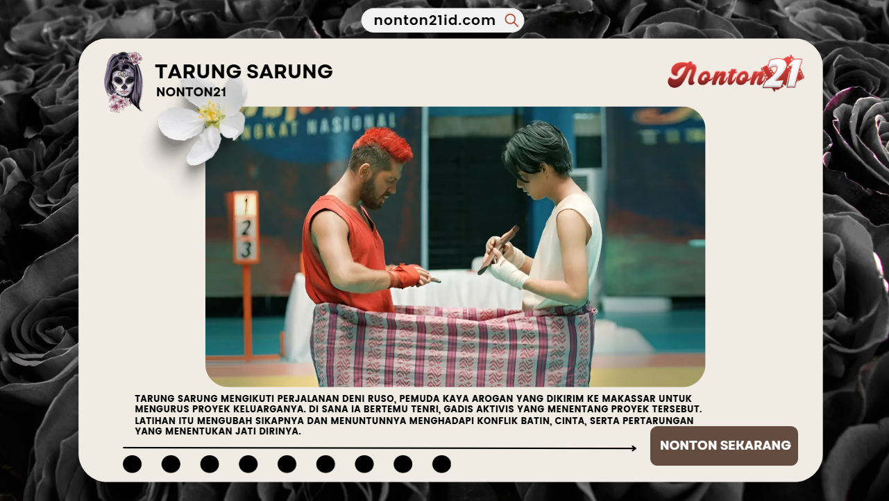 🎬 Ayo saksikan Tarung Sarung hanya di NONTON21! Siap-siap terbawa dalam kisah cinta, konflik, dan perjalanan Deni menemukan dirinya melalui pertarungan yang penuh semangat dan nilai budaya Indonesia.