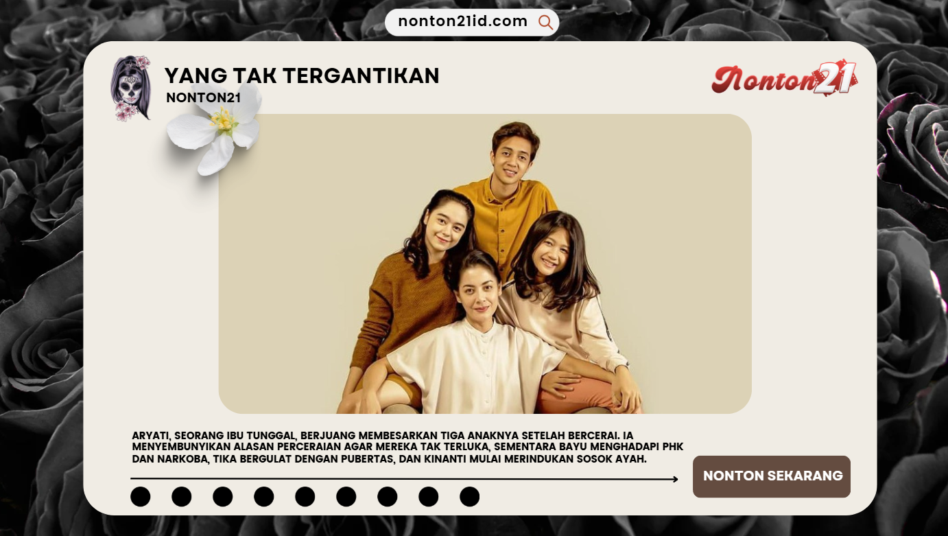 👉 Saksikan Yang Tak Tergantikan hanya di NONTON21, dan biarkan kisah cinta yang tak pernah tergantikan ini mengisi ruang hatimu.